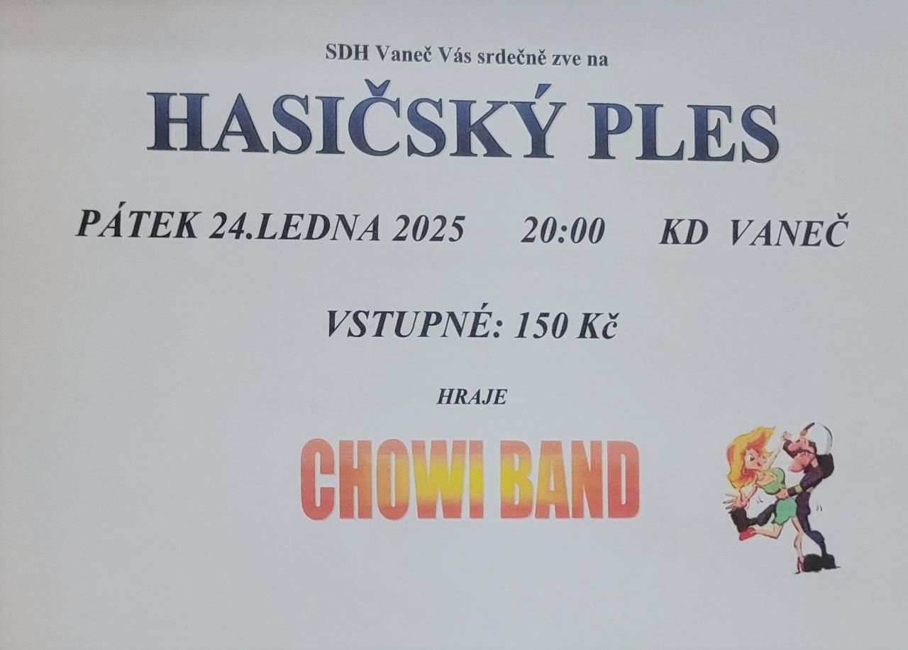 SDH Vaneč vás zve na tradiční hasičský ples v kulturním domě ve Vanči.